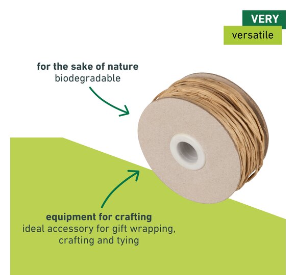 Easy to cut to size: The kraft paper cord is equipped with an integrated steel cutting aid. This means that it can be easily cut to the desired length without the use of scissors. This practical feature saves time, especially when things need to be done quickly.