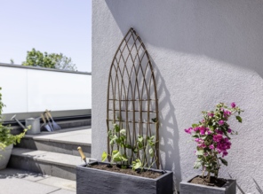 For climbing plants, it is ideal to provide the required hold in form of a climbing aid. Our premium climbing trellis ARCH is made from black coated metal and always looks great – on house walls, in large flower pots or free-standing in the garden. Available in two different heights it is suitable for climbing plants such as wisteria, roses, nasturtium, ivy or vines.