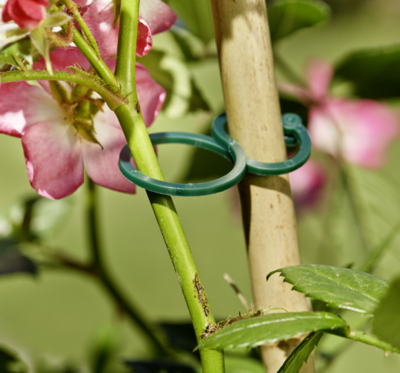 Plastic plant rings, which grow with the plant for straight, unimpeded growth. 25 pieces in a set (15 smaller plant rings and 10 larger rings).