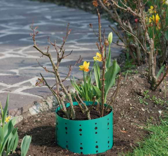 The earth remains permanently at the grafting point and is prevented from being washed away, thereby providing reliable protection against the cold. The diameter can be adjusted up to 26 cm.