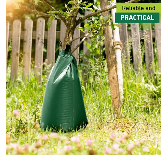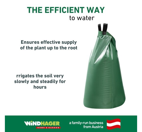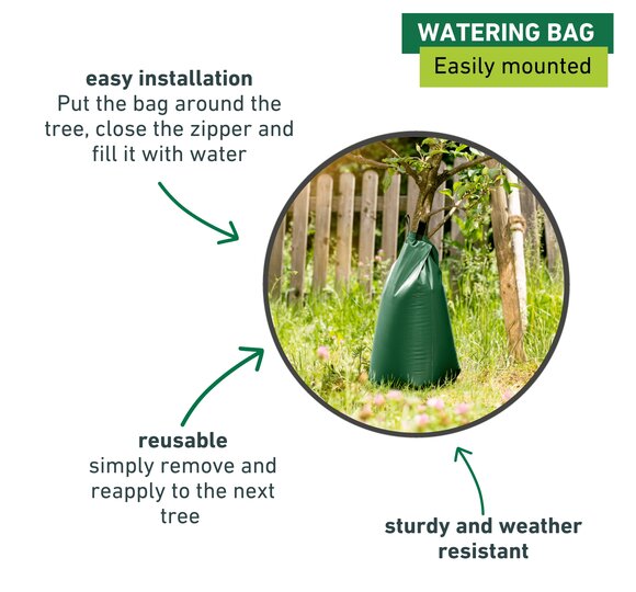 Thanks to slow irrigation, the soil can store the water for a longer period of time, which means less frequent watering. The application is also very simple: the irrigation bag is placed around the trunk, closed with a zip fastening and then filled with water through the filling hole. If a larger filling volume is required or the tree trunk has a larger diameter, the bags can be joined together thanks to the zip fastening. The special feature is that the tree can be optimally supplied not only with water but also with liquid nutrients.