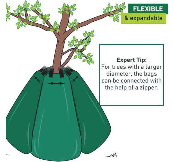 • for larger trees or an increased water requirement the bags can be connected by means of the zip fastening