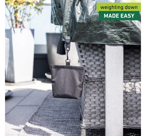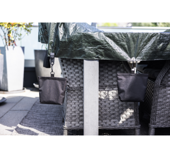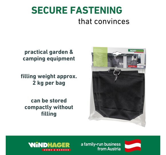 When strong winds and storms rage, garden helpers such as tarpaulins or covers are rarely spared. The robust MINI sandbags from Windhager are used to keep useful outdoor equipment securely in place. A simple but effective solution for weighting down garden furniture covers, beach tents and camping equipment.