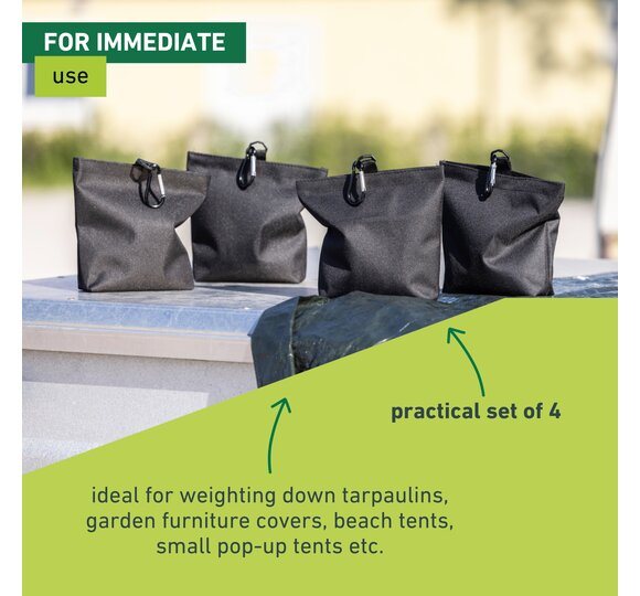 - STRONG SUPPORT IN CASE OF WIND AND THUNDERSTORMS - Ideal for weighting down tarpaulins, garden furniture covers, beach tents, small pop-up tents, etc.