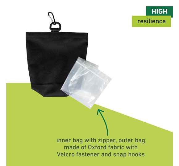 - FOR IMMEDIATE USE - Inner bag with zipper, outer bag made of Oxford fabric with Velcro fastener and snap hooks