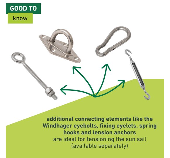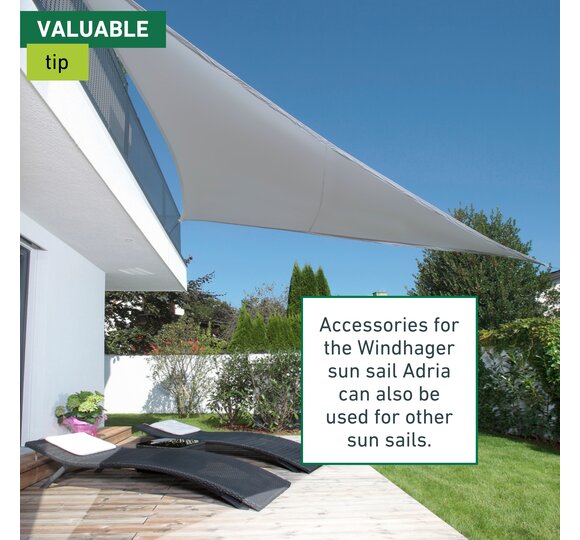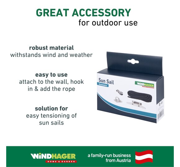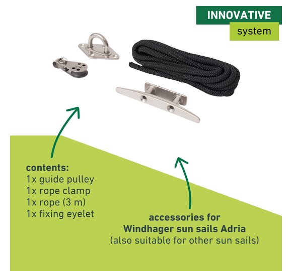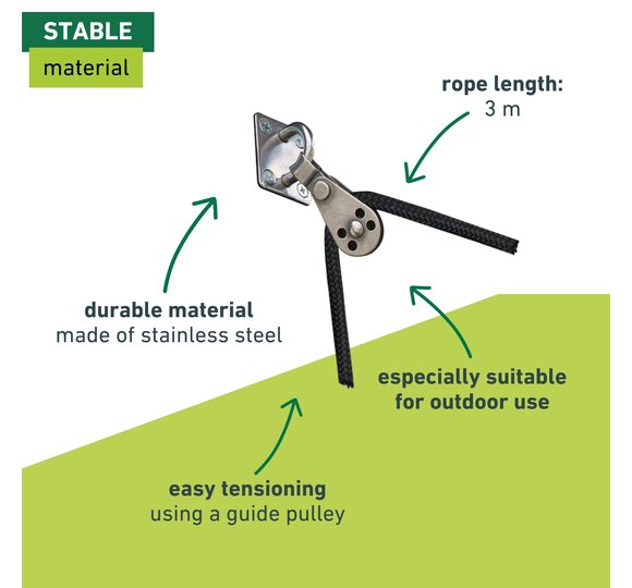 Suitable for indoor and outdoor use. Made of stainless steel. A guide pulley makes it easy to put up the sail.