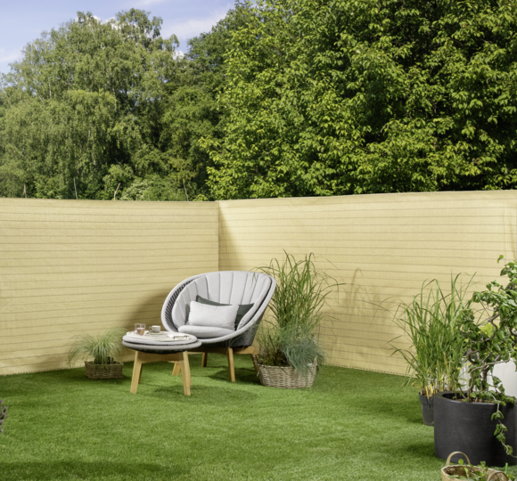 This privacy screen mat protects from prying eyes - but is wind-permeable! The plastic fabric in subtle design is recyclable, but is still UV-stable and durable. In addition, easy to clean with water.