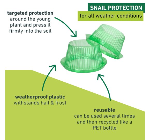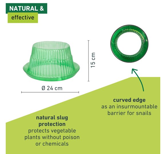 The bent-down rim of this snail collar protects plants from all snails - completely naturally and without the use of chemicals. The ring makes precise watering easier, the earth surrounding the ring remains dry and the snails thus find it more difficult to move about. Ideally combined with plant cover (Art. No. 05589).