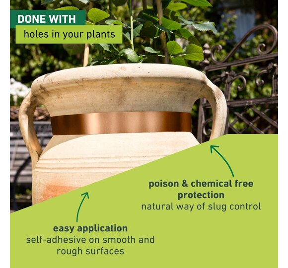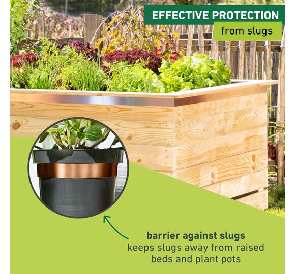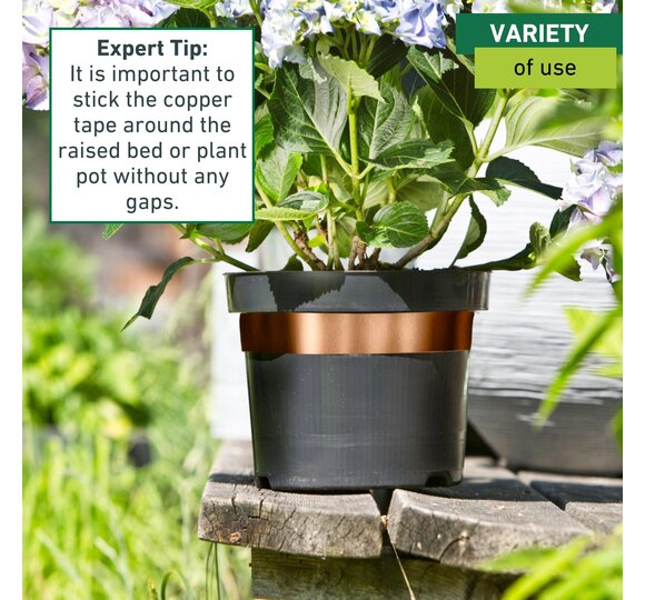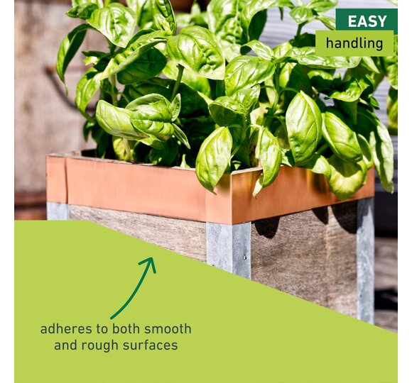 Thanks to its adhesive back, the copper strip can be attached to pots, cold frames and raised beds of various sizes quickly and effortlessly while optimally protecting your plants once applied. Once applied, wet the strip to provide for optimum oxidation layer build-up.