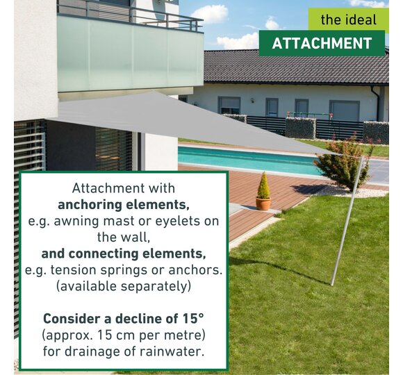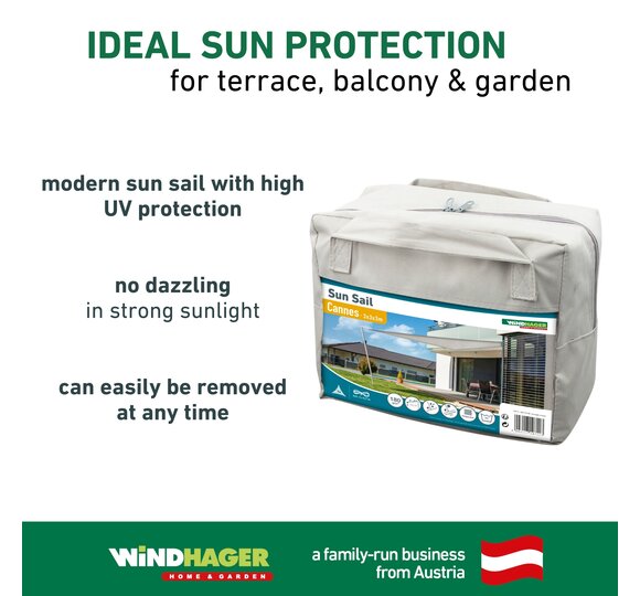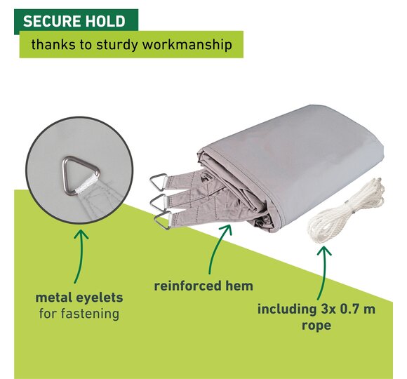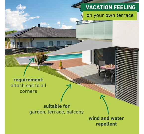 This sun sail made from high-quality HDPE fabric provides optimal shade on patios, balconies, in gardens, on campgrounds, etc.