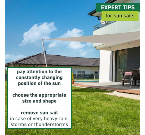 The sun brings light and warmth – but sometimes it brings too much: a cosy meal with friends on the terrace, an afternoon break on the balcony, even on holiday when camping there are moments when shade is simply more pleasant. Awnings that are easy to put up are ideal for this. Available in various colours and shapes, you will find a wide range of sun sails.