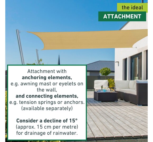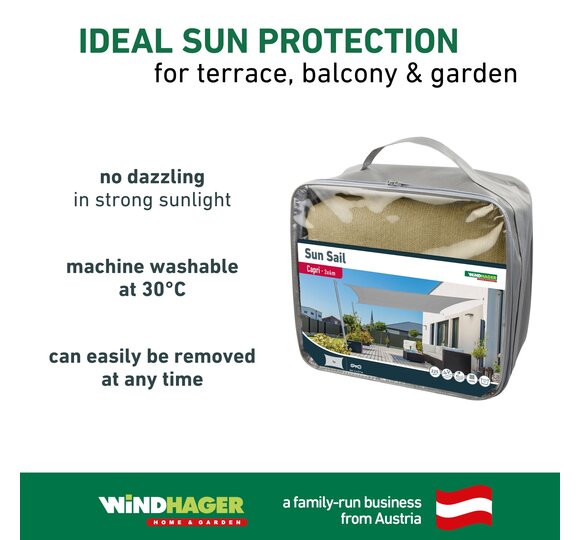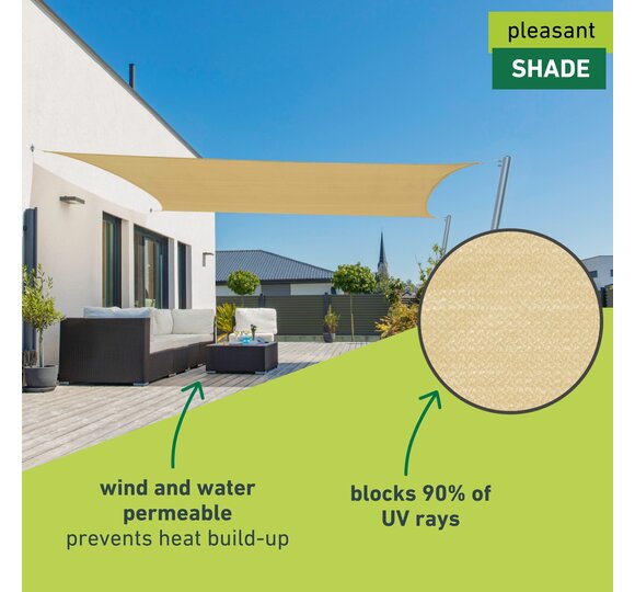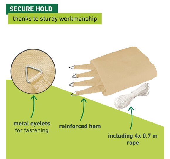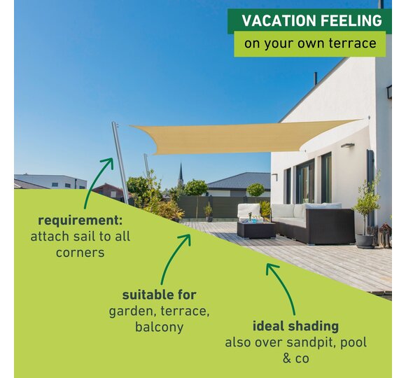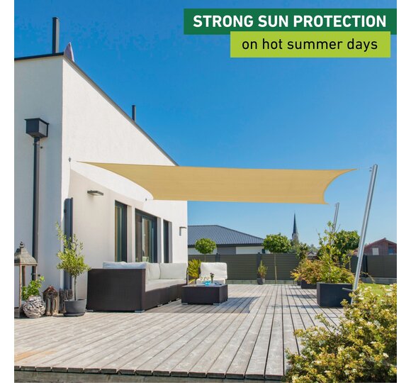 This sun sail made from high-quality HDPE fabric provides optimal shade on patios, balconies, in gardens, on campgrounds, etc.
