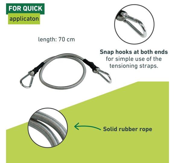 • carabiner hooks at both ends for convenient and safe mounting