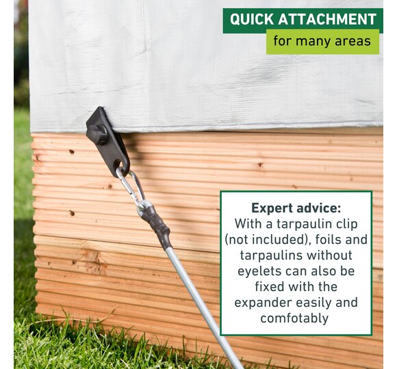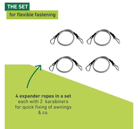 Useful accessory for quick and simple fixing of awnings, sun shades, etc. With the practical expander, the mounting becomes child’s play- simply tension, hook in, finished.