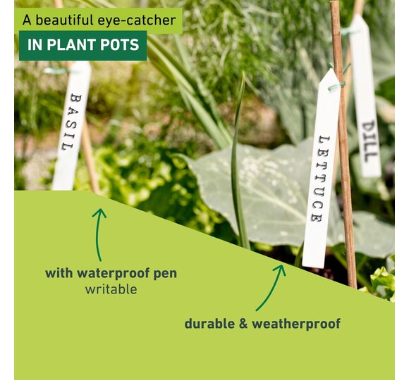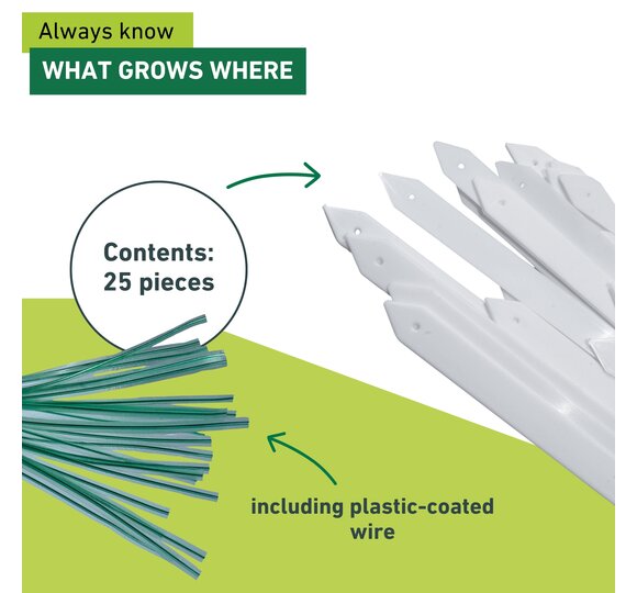 They can also be stuck into the soil. Includes plastic-coated wire.