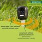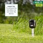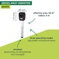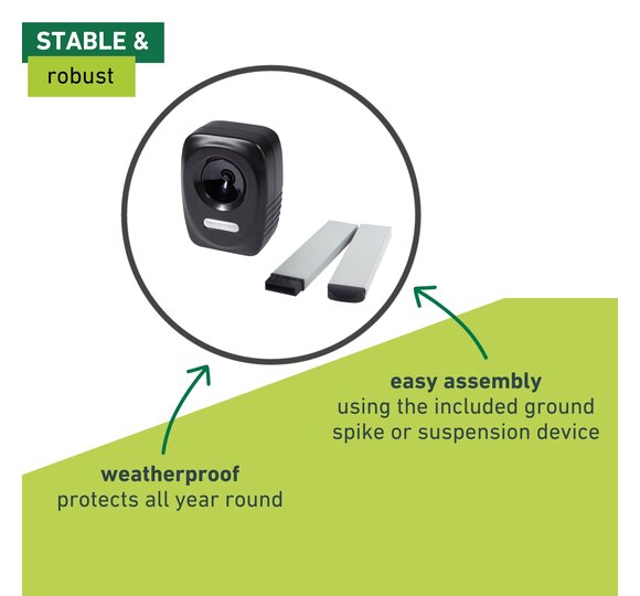 The ultrasonic repeller can be anchored in the ground using the included ground spike and can also be suspended thanks to the recess on the back. The integrated infrared motion sensor activates the ultrasound tones in accordance with the set intervals [0-3] within a frequency range between 17 to 23 kHz.