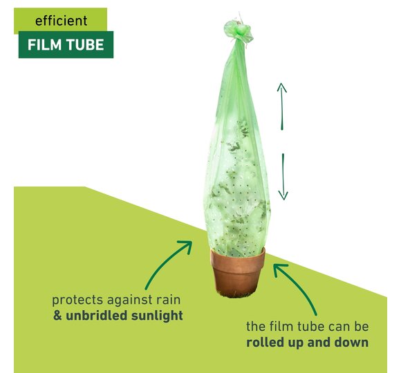 - WELL PROTECTED - The film tube protects the sensitive plants from the cold and, if necessary, from rain in the warmer months.