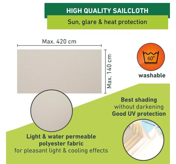 • UV-resistant shade for terraces, balconies and conservatories etc.