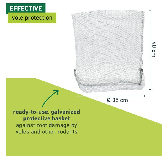 - INVISIBLE SUPPORT - Hidden in the soil, the vole basket effectively and discreetly protects young roots from being eaten by pests