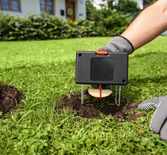 Gnawed vegetables and roots, a favourite of voles, and wavy lawn scars will soon be a thing of the past. The TRACK & CATCH trap is placed directly in the vole tunnel and snaps shut as soon as a vole touches the fork. No matter which direction the mouse comes from, the trap snaps shut on both sides. A successful catch is immediately recognizable by the position of the handle. With this innovative trap, you don't need to dig into the ground to check whether the trap has been triggered or not. The trap is easy to use and no previous knowledge is required.