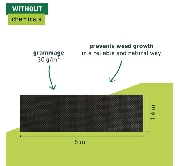 This special fleece quickly and naturally puts an end to troublesome weed growth without any chemicals. The breathable fleece warms the soil and regulates the balance of moisture during the entire vegetation phase.