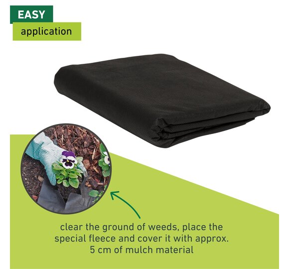 - EASY TO APPLY - Clear the soil of weeds, place the special fleece and cover with approx. 5 cm of mulch material