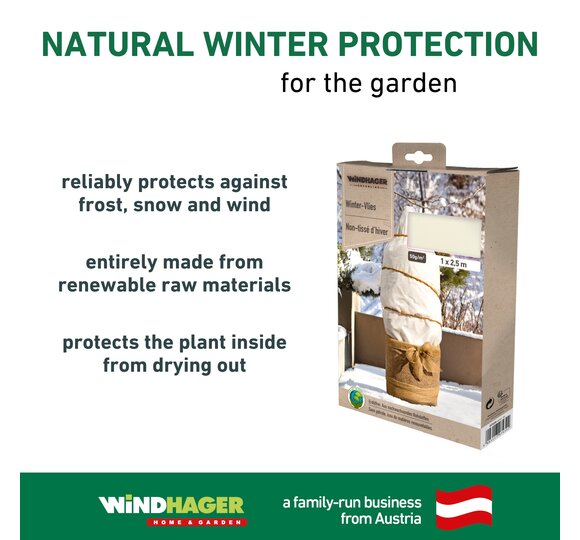 Winter protection tip:To protect potted plants and roots, it is recommended to additionally cover the soil and the planting pots. Windhager’s jute, coconut fibre mats and mulch discs are particularly suited for this purpose.
