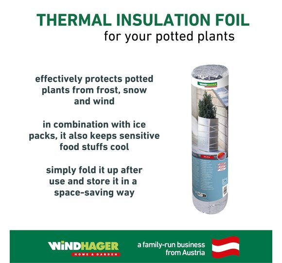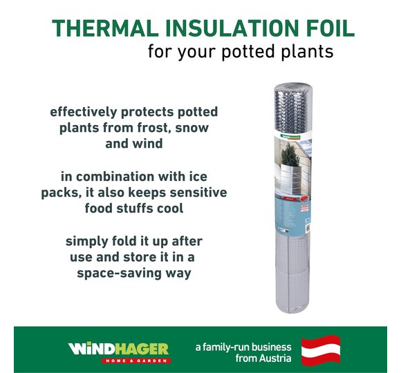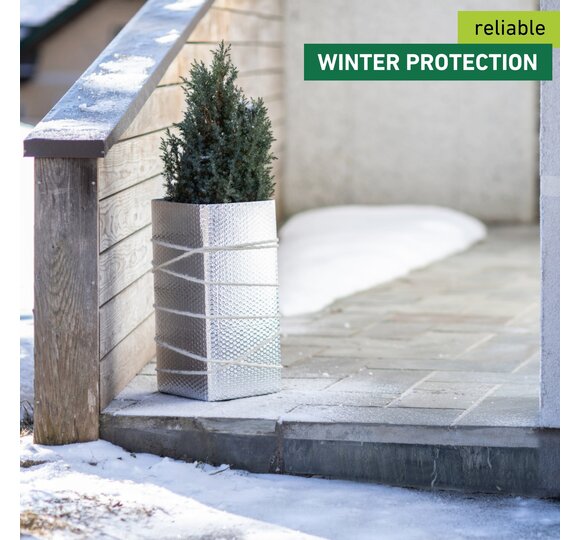 Frost, snow and wind quickly affect sensitive plants. The SUPERPROTECT winter insulation foil is ideal for protecting them. It consists of bubble wrap with an aluminium coating. It can be easily and quickly placed around plant pots, for example, and reduces the risk of the plant’s roots freezing to death.