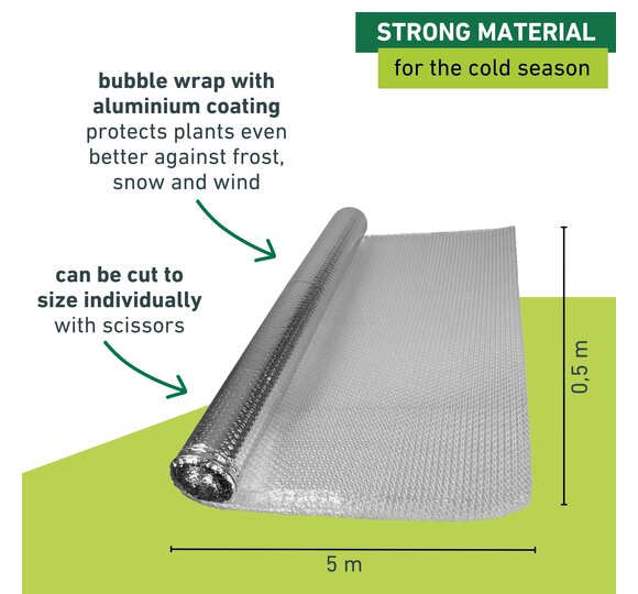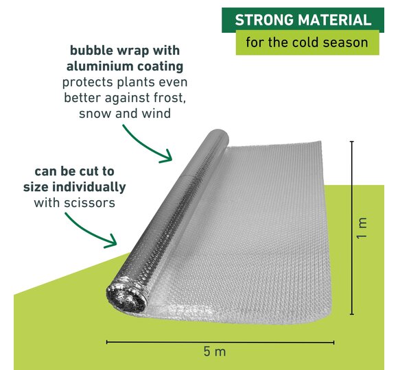 • STRONG MATERIAL FOR OUTDOOR USE - The bubble wrap with aluminium coating protects plants even better against frost, snow and wind