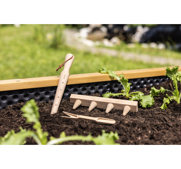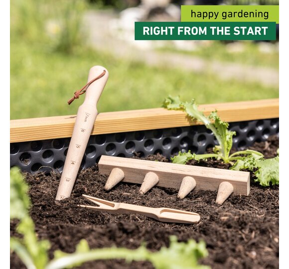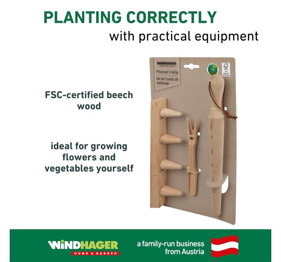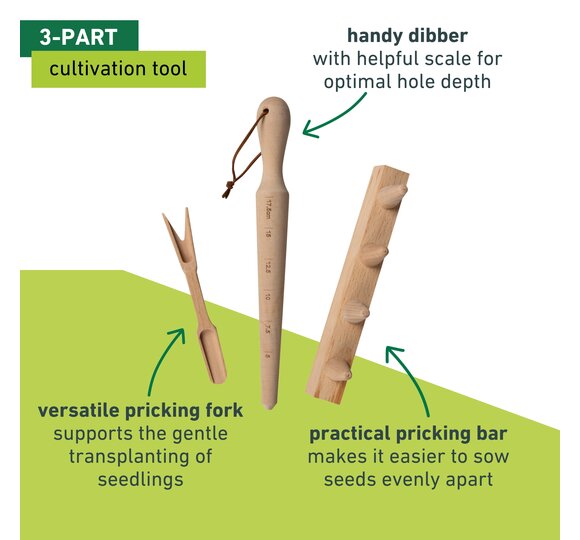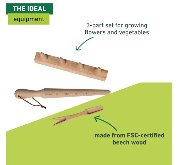- THE IDEAL EQUIPMENT - 3-piece set made of FSC-certified beech wood for planting and growing flowers, vegetables & co