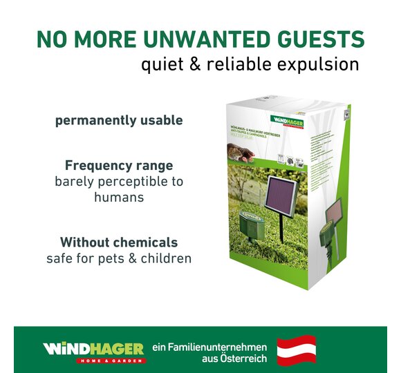The vole and mole repellent MOLE STOP is the first product developed by Windhager and it laid the foundation for the company's success. It has been successful on the market for over 25 years - clear proof that the device is reliable! No wonder, since it was developed in Austria and is manufactured in the EU. Proven quality that impresses!