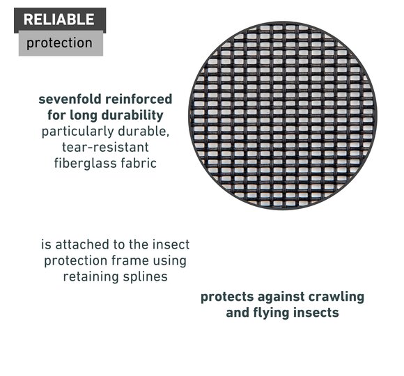 This shape-retaining special fabric has been specially coated and reinforced, to withstand your beloved pet's claws. Thus, the fly screen remains intact and continues to protect you from insects.