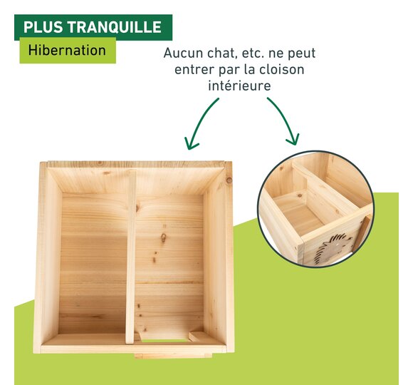 - UN REFUGE POUR LES HÉRISSONS - La structure spéciale avec paroi intérieure de séparation empêche l’intrusion de chats et autres prédateurs