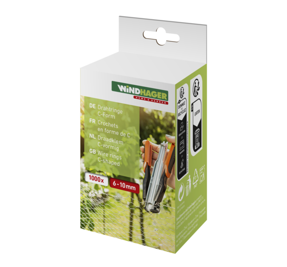 Matériel accessoire adapté pour la pince circlip. Les couronnes de fil en C galvanisées viennent dans leur emballage de 1000 pièces et sont le complément idéal pour relier les grilles et les treillis de tout type.