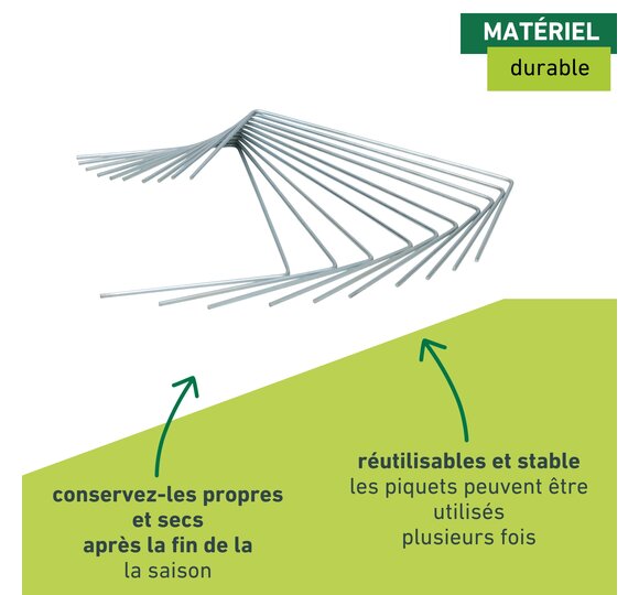En métal galvanisé, grandes, pour la bonne fixation des voiles et des films dans le sol.