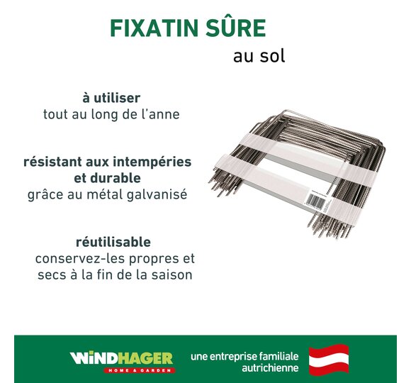 Les solutions de fixation simples des films et des voiles restent solidement ancrées dans le sol et constituent un moyen de fixation sûr. Tandis que les tuteurs évitent que les filets et les plantes n’entrent en contact direct, les protégeant ainsi contre les dommages, les piquets maintiennent fermement en place les tapis de mauvaises herbes, bâches en tissu, films pour parterres et filets dans le sol.