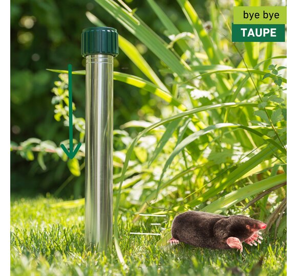 l’appareil anti-taupes et campagnols ALUMINIUM dérange les animaux qui essaient de le combattre – en creusant davantage. Il se peut donc que pendant plusieurs jours, vous constatiez un plus grand nombre de taupinières. Si l’appareil reste en service, les animaux abandonneront l’endroit au bout de quelques jours et prendront la fuite.