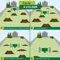Le MOLE STOP est doté d’un filetage qui est vissé dans le sol jusqu’à atteindre le niveau de ce dernier. Dans des conditions optimales – sol dur, espace ouvert – le piège à taupes a une portée jusqu’à 1 000 m² (rayon de 18 m env.).