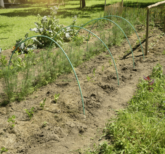 - idéal pour réaliser des tunnels en les recouvrant de voiles de croissance, films ou filets anti-oiseaux permettant de protéger les cultures.