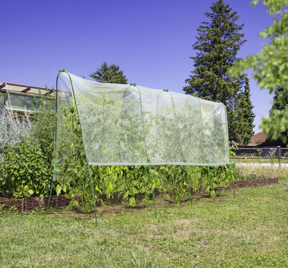 L’arceau pour tunnel en forme de U sert de base idéale pour un tunnel de protection de plantes et il est simple à manipuler. Le matériau est durable et réutilisable, et rien ne s’oppose à de multiples utilisations. Revêtu d'un voile ou d’un film de croissance, un tunnel convient de manière idéale pour la protection des plantes contre l’influence des intempéries et favorise leur croissance. Même lorsque des hôtes indésirables font leur apparition dans le jardin, un tunnel à arceaux peut vous aider à vous défendre. Revêtu d'un filet, il protège les plantes sensibles, par exemple contre la piéride du chou. Ce papillon est certes joli à voir, mais il peut causer des dégâts considérables à tous types de cultures de choux, ainsi qu’au tropaéolum ou aux betteraves à salade. Il pond ses œufs dans les plantes, ses chenilles en sortent, percent des trous dans les plantes et des tunnels dans le cœur des plantes. Les sécrétions provoquent le pourrissement des plantes. Un filet anti-insectes sert de prévention et protège la récolte. Non-tissés, films et filets, ainsi que clips de fixation et de retenue, disponibles séparément pour la fixation.