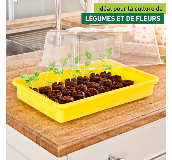 Le bac à semis peut être transformé en une serre d'intérieur complète pour le rebord de fenêtre avec un couvercle adapté (art. n° 05509).