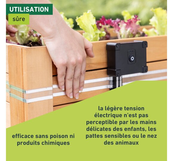 - GRANDE FLEXIBILITÉ – La barrière anti-limaces à piles e-FENCE protège le parterre surélevé où qu’il soit installé, sans câble ni branchement électrique.