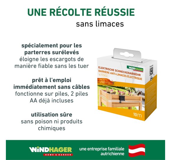 - UNE RÉCOLTE RÉUSSIE SANS LIMACES – La barrière anti-limaces électrique e-FENCE protège efficacement les parterres surélevés contre les attaques de limaces.