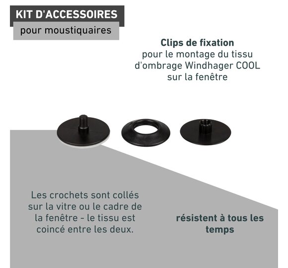 - SET DE MONTAGE POUR PROTECTION SOLAIRE - clips de fixation supplémentaires / de remplacement pour le montage du tissu d'ombrage Windhager COOL sur la fenêtre