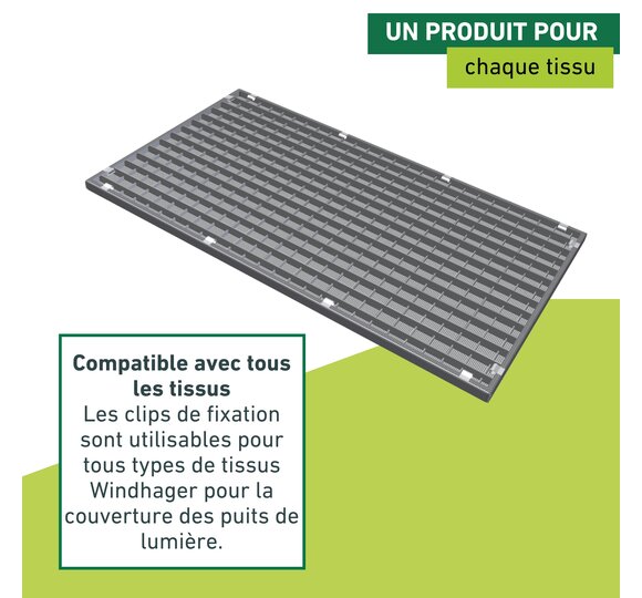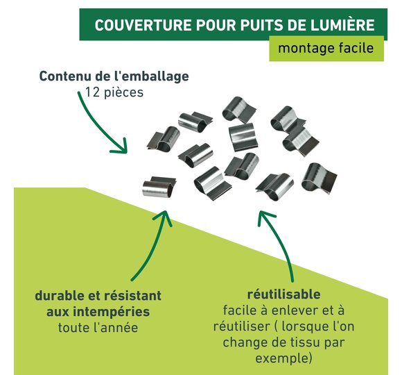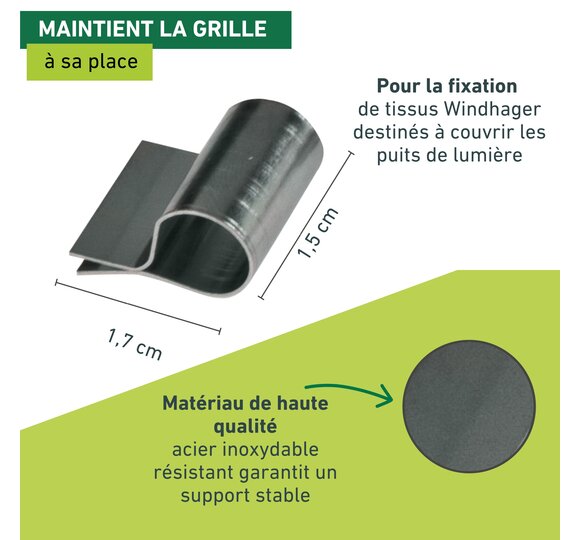 Les agrafes résistantes aux intempéries fixent le tissu sur la grille du soupirail de votre cave pour la protéger en toute fiabilité des insectes indésirables et des feuilles mortes.
