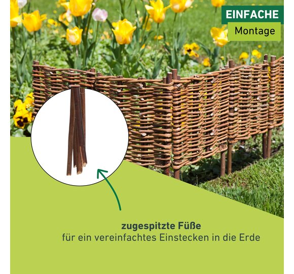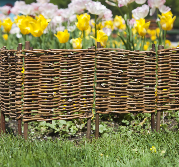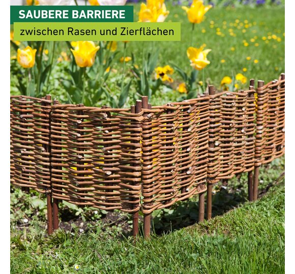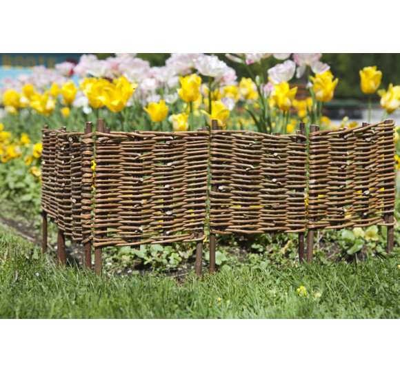Pour joliment délimiter les plates-bandes et carrés de fleurs et de légumes, mais aussi tous parterres et autres surfaces moins géométriques. En osier non traité, tressé horizontalement. 5 éléments.