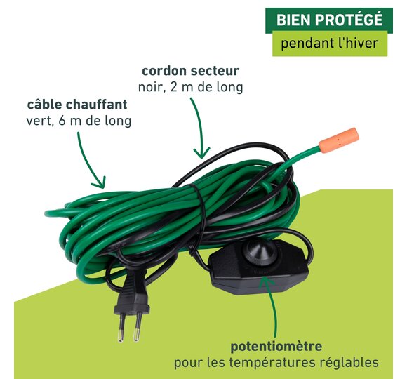 - POUR UN HIVER EN TOUTE QUIÉTUDE - 6 m de câble chauffant avec 2 m de câble d’alimentation, pour une utilisation flexible sur des pots de plantes de différentes tailles