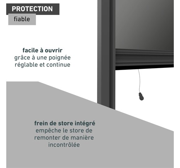 - CONVIVIALITÉ AU QUOTIDIEN - L'ouverture est confortable grâce à la barre de manœuvre réglable et continue. Le frein de store intégré empêche tout mouvement incontrôlé vers le haut. Disparaît dans le coffre du store pour un gain de place lorsqu'il n'est pas utilisé.