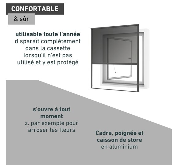 - VENTILATION SANS SOUCI - La fenêtre enroulable à moustiquaire non conventionnelle à suspendre combine les avantages d'un store enroulable à moustiquaire avec ceux d'une fenêtre à cadre. Protection solaire incluse.