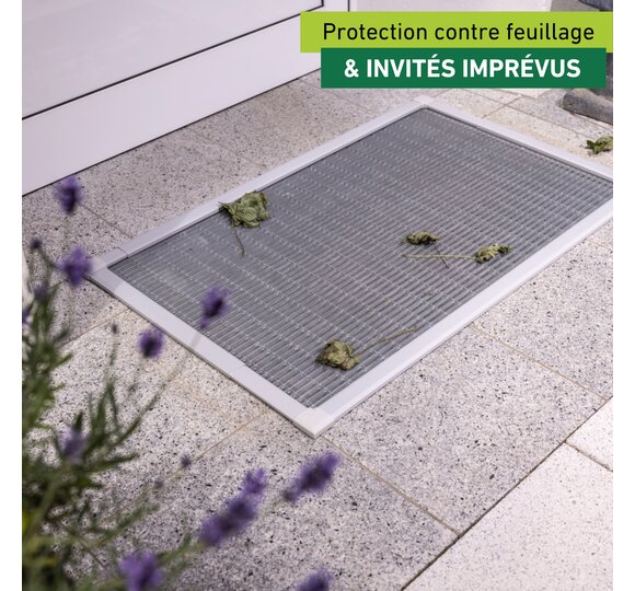Protégez aussi les puits de lumière, les gouttières et les descentes de gouttières contre les feuilles, la saleté et les parasites ! Les protecteurs de gouttière et de tuyau évitent que la gouttière ne soit bloquée par des feuilles – et empêchent ainsi les longues opérations de nettoyage. Les puits de lumière ou les conduits de cave doivent également être protégés des feuilles, car ils sont souvent difficiles à nettoyer. Cependant, notons aussi que les souris, les araignées et les insectes utilisent également ces ouvertures pour entrer dans la maison. Une légère couverture des trous peut empêcher rapidement et facilement une telle intrusion.